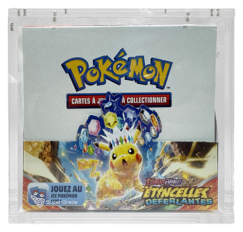 Ce boîtier est fabriqué en acrylique transparent, avec des dimensions internes spécialement conçues pour accueillir les ETB scellées. Son système de fermeture à aimant, garantit un maintien solide et discret. Les coins sont polis et les finitions soigneusement travaillées pour un rendu premium. Ce boîtier est idéal pour exposer vos articles scellés en vitrine ou sur étagère, en toute sécurité.